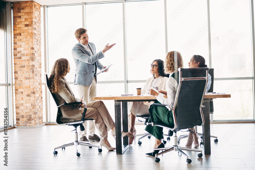 Professional team gathering in an elegant modern office for collaboration on a business project with diverse cooperation