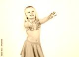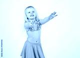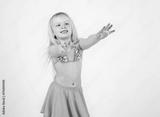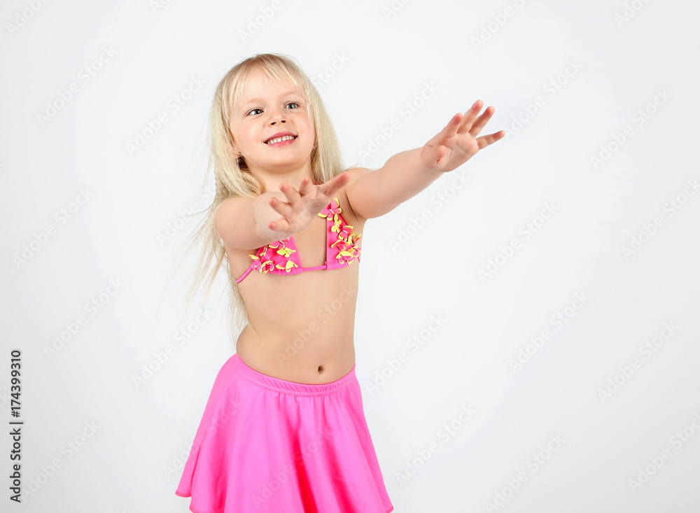 Beautiful teen girl dancing dressed in swimsuit, on white background