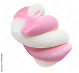 Flying one Marshmallow candy isolated on white. High-Quality Levitating Marshmallow. Twisted colorful marshmallow Top view. Flat lay.