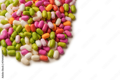Sweet multicolored candies isolated on white background.