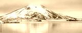 reflection in the lake of snow covered volcanic mountain, Vindbelgjarfjall , Lake, Mývatn, Iceland