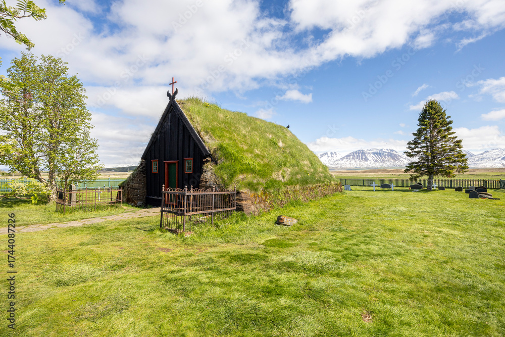 Víðimýrarkirkja - Víðimýri Turf Church, with green roof, North Icleand