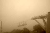 View of the famous Grenoble cable cars, known as “Les Bulles,” ascending from the city toward the Bastille fortress, with panoramic mountain scenery in the background.