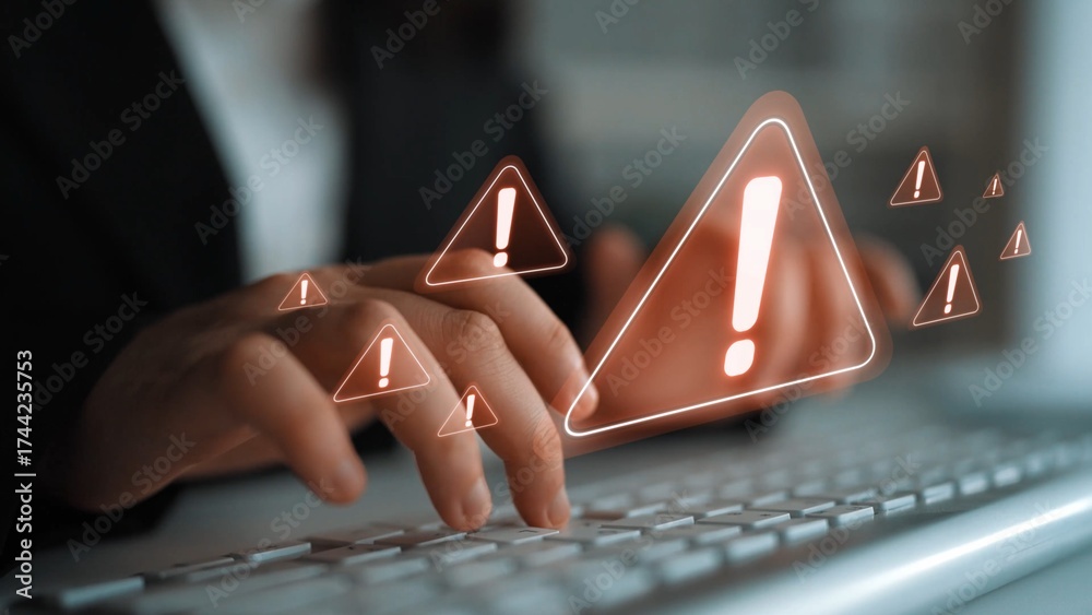 Cybersecurity alert warning showing red cyber for data breach, network threat, and cyber security system vulnerability with emphasis on security risk, caution, digital protection Marrow