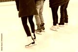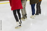 close up of friends on skating rink