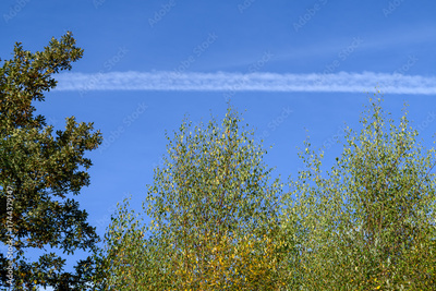 Nature Meets Technology Airplane Contrail in a Blue Sky