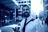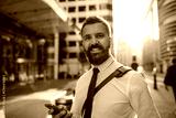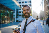 Smiling businessman on the street in the city.