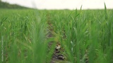 wide green field of wheat. nature wildlife plants and trees concept. beautiful green wheat sprouts on a large field close-up, growth lifestyle and use of agricultural plants