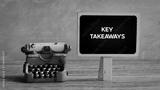 Key Takeaways Written on a Black Mini Chalkboard Next to a Vintage Red Typewriter