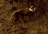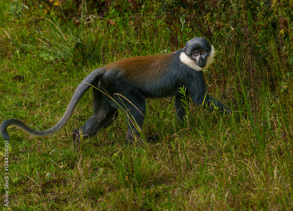 Colobus monkey beside highway in Nyungwe National Park mountains in Rwanda.