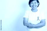 Elderly with Orange Ribbon for September Leukemia, March Kidney cancer day, Multiple Sclerosis, November Complex Regional Pain Syndrome, CRPS, COPD, Chronic Obstructive Pulmonary disease concepts