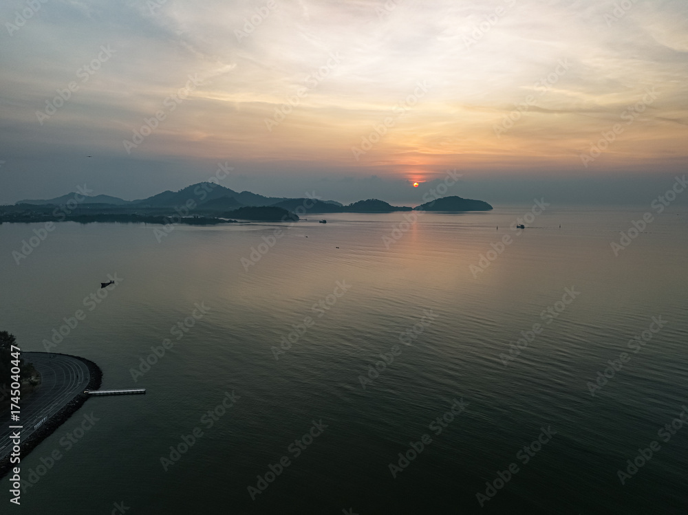 Beautiful sky sunset or sunrise clouds over sea nature background
