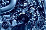 Car engine, concept of modern vehicle motor with metal, chrome details, automobile industry, monochrome