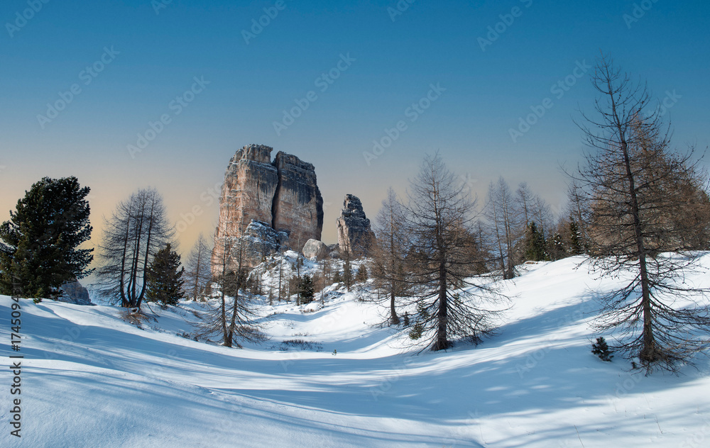 Climbing up the snow of Cortina d'Ampezzo, the five towers appear