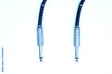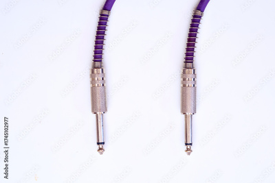 Purple cables with metalic jacks. Connection electric guitar,sound equipment