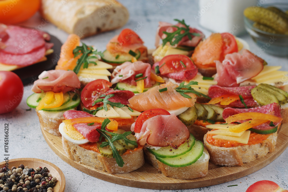 Oblozeny chlebicek or just chlebicek, traditional open sandwich in Czech Republic