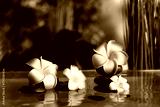 Lake with spa stones and beautiful plumeria flowers in tropical bamboo garden