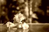 Lake with spa stones and beautiful plumeria flowers in tropical bamboo garden