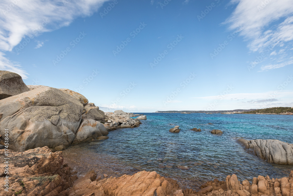 Rocky coastline and blue Mediterranean of Cavallo island near Corsica
