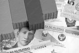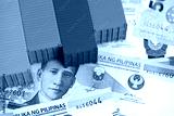 Philippines peso currency money bills and toy cargo containers. The concept of shipping and logistics