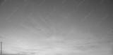 Sky panorama with orange evening glow. Delicate pink wispy clouds and blue above.