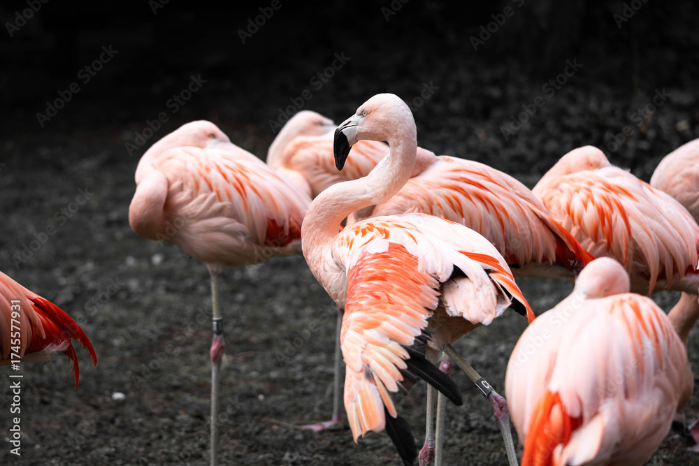 Group of Flamingos Standing Together with Vibrant Pink Feathers