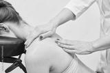 Female receiving chair massage in spa setting for relaxation and stress relief.