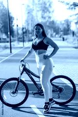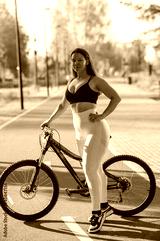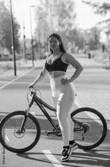Curvy Caucasian Woman Riding Bicycle in Park.