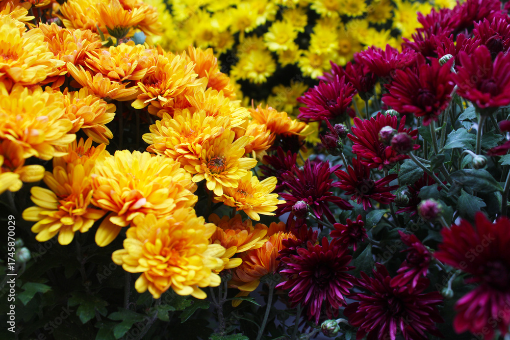 yellow and red chrysanthemum, beautiful chrysanthemum flowers in the garden