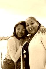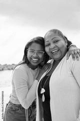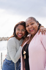 Vertical. Cheerful mother and daughter embracing on a sunny beach, sharing joyful moments and creating cherished memories together while enjoying the warmth of the sun and the beauty of nature