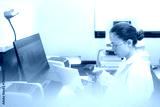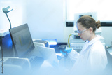 In a future paperless lab a data scientist provides final human oversight as an AI system automatically audits and validates data integrity between instruments and a blockchain ledger.