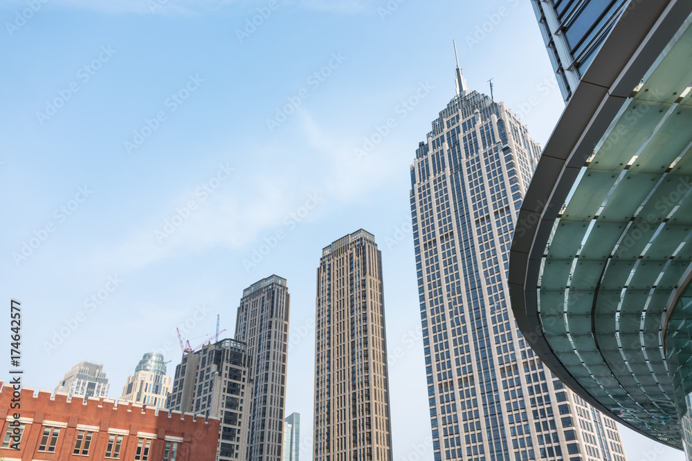architectural complex against sky in downtown tianjin,china.