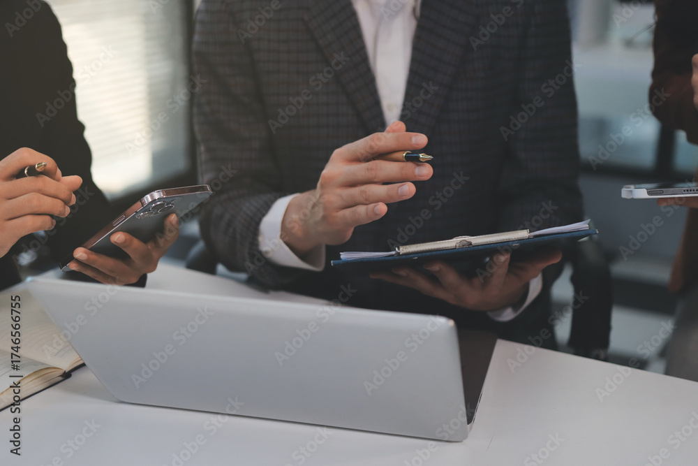 Accounting company provide finance and taxation planning for profitable cash flow, Auditor and accountant team working in office, analyze financial data and accounting record with calculator.Insight