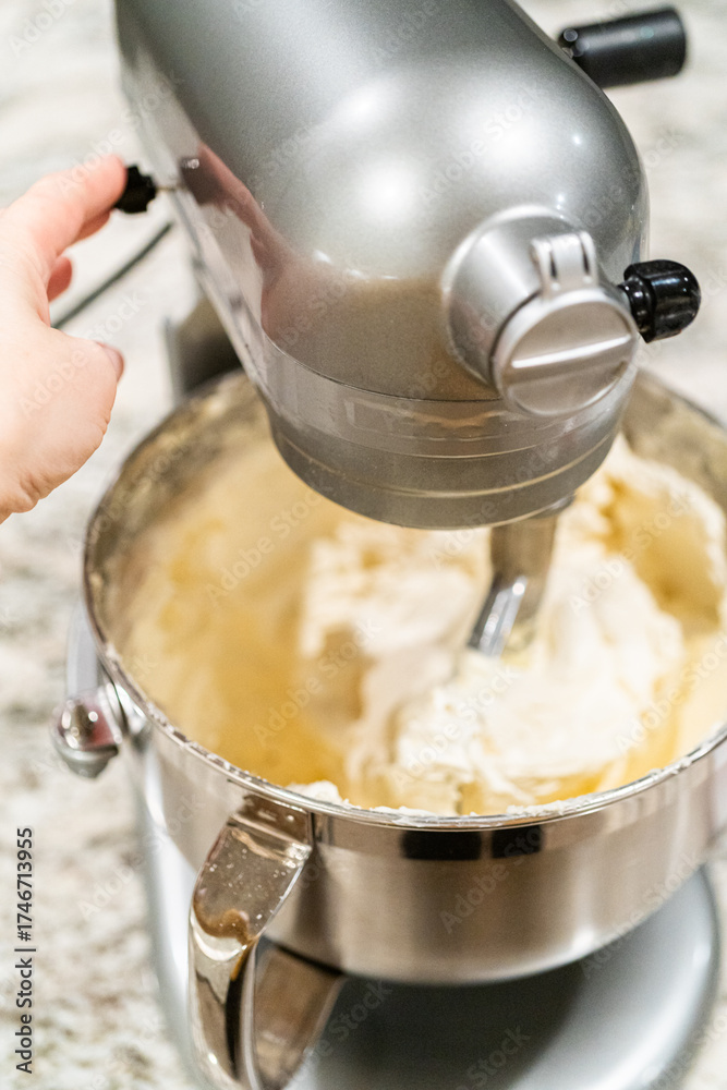 Creamy Buttercream Frosting Whipped in Stand Mixer Bowl