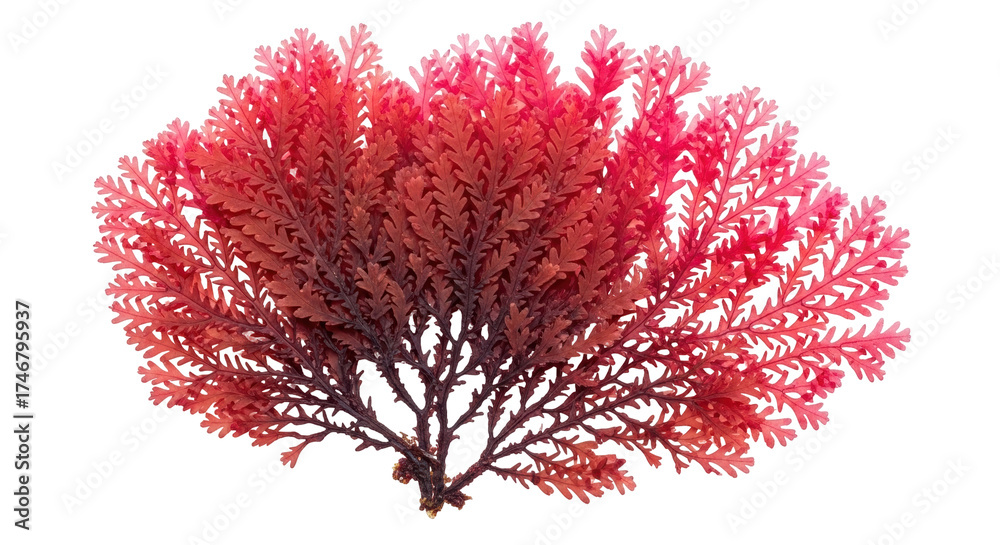 Isolated red algae, a vibrant marine plant commonly found on coral reefs and the ocean floor