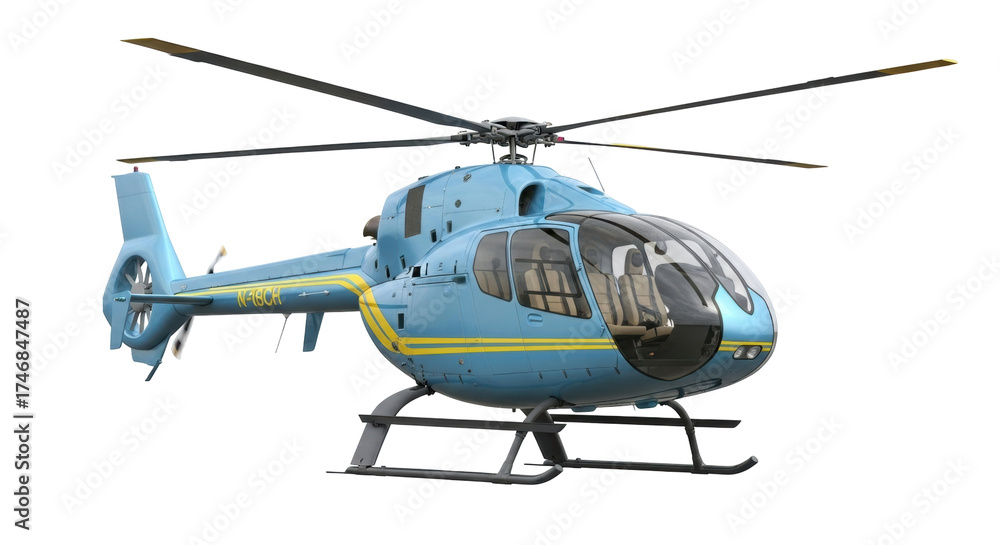 Isolated passenger helicopter ready to fly through the air on a beautiful day to destinations