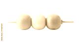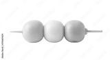 Isolated dango skewers with three colorful sticky rice balls on a wooden stick, food photography