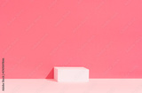 Minimal pink product podium with geometric shadows and bright background. Clean modern composition for beauty, cosmetic, or branding presentation.