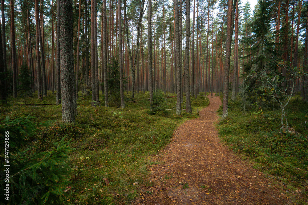 Beautiful pine forest of the Karelian isthmus.Evergreen light coniferous forest.A place to collect mushrooms.Outdoor walks.Oxygen production.