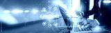 Businessman using laptop and e-governance analyzing technological data, digital government services, citizen engagement, secure platforms, transparency tools, public administration