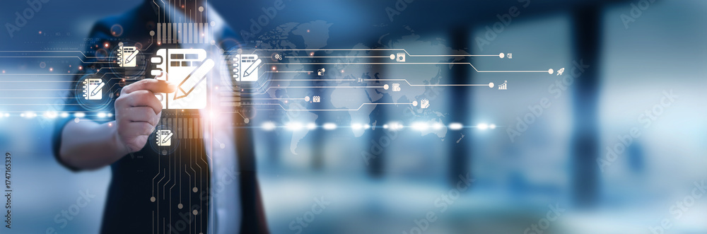 Businessman hand hold agenda, strategic planning, meeting schedules, task prioritization, project timelines, workflow organization, corporate planning, calendar management, operational coordination