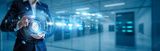 Businessman hand hold identity and access management, secure authentication, multi-factor login, role-based access, compliance monitoring, user provisioning, single sign-on, cloud identity