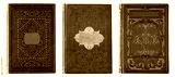 Old skin book cover with embossed golden abstract pattern and floral decorations isolate on white background. Modern style. Abstract vintage decorations 19th century.