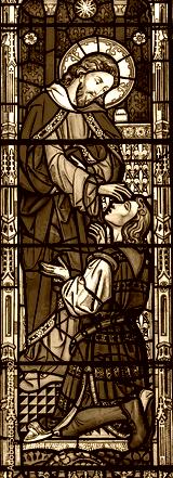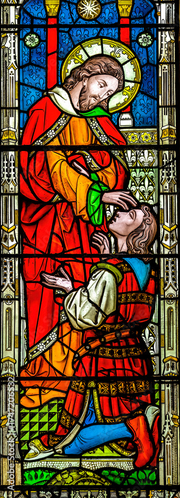 Colorful Jesus Blessing Person Stained Glass Abbey Church Bath England