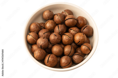 Macadamia nuts in a shell isolated on a white background.