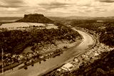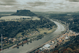 Widok z twierdzy Konigstein na Łabie, miasta Konigstein i Lilienstein; Szwajcaria Saksońska; Niemcy