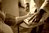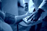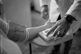 Close up of pharmacist checking blood pressure of senior patient in pharmacy.