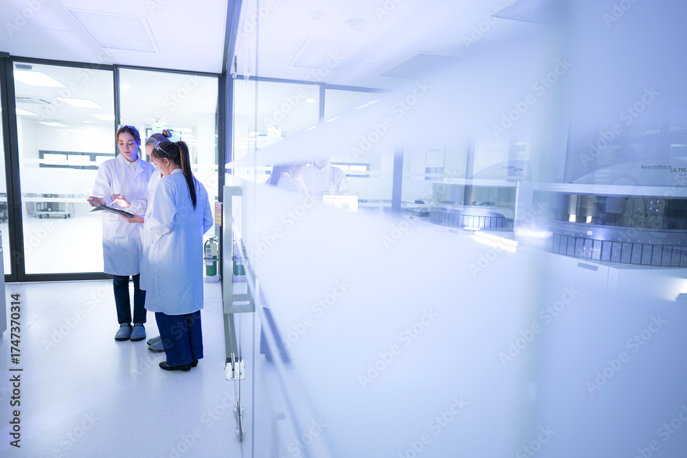 A bio-engineer in a futuristic lab examines a vial of glowing, synthetic cells, a product of advanced gene editing and bio-hacking, for use in next-generation therapeutics.