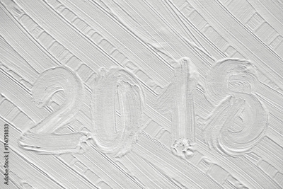 The background is white with figures painted with paint. Postcard with the New Year 2018.