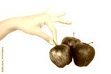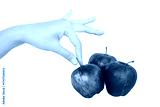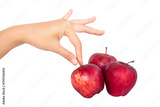 hand gesture picking up an apple with a white isolated background